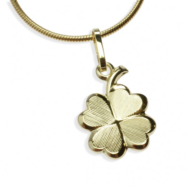 Ein zeitloser Glücksbringer: Dieser Anhänger aus 333er Gold ist in Form eines vierblättrigen Kleeblatts gestaltet und symbolisiert Glück und Hoffnung. Die feinen Gravurlinien auf den Blättern verleihen dem Design eine elegante Textur, während die glänzende Oberfläche dem Schmuckstück einen luxuriösen Touch verleiht. Ideal als Geschenk oder um einem Outfit eine persönliche und stilvolle Note zu verleihen.